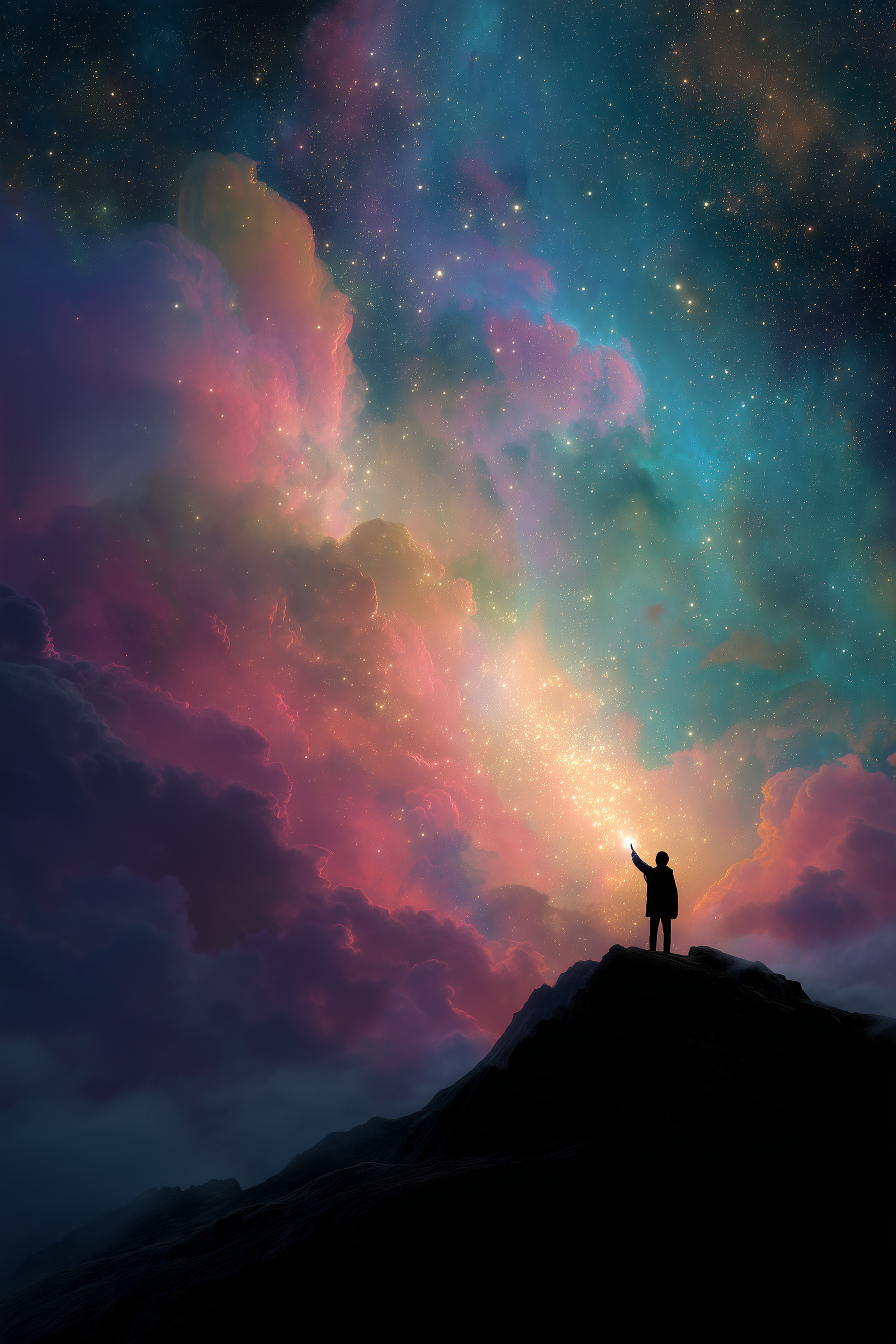 Verleihen Sie Ihren Räumen mit dem Poster „Flowing Space“ dynamische Energie. Die leuchtenden Farben fangen die Essenz eines fließenden Ganzen in kosmischer Harmonie ein. Dieses Kunstwerk vereint kräftige Farbtöne und fließende Formen und schafft so eine inspirierende visuelle Reise, die Kreativität und kulturelle Verbundenheit fördert. Perfekt, um jedem Raum Lebendigkeit und Dynamik zu verleihen.