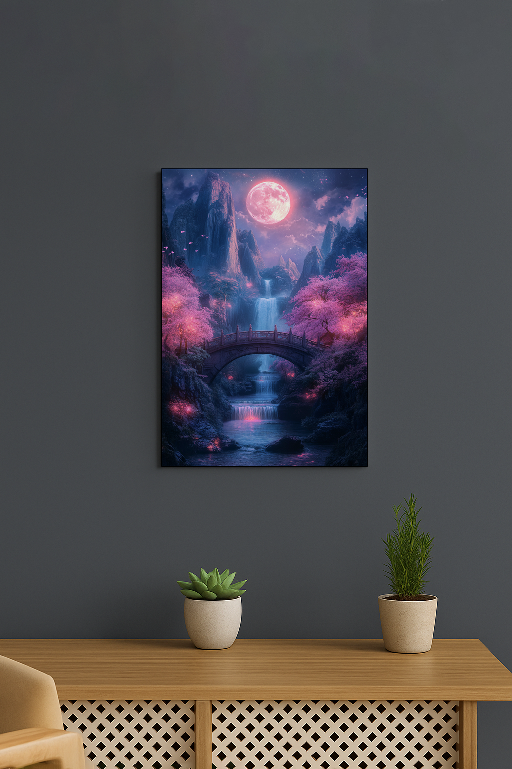 Verwandeln Sie Ihre Räume mit dem bezaubernden Poster „Magische japanische Nacht“. Dieses faszinierende Kunstwerk fängt die friedvolle Schönheit der japanischen Nachtlandschaft ein und schafft eine ruhige und inspirierende Atmosphäre.