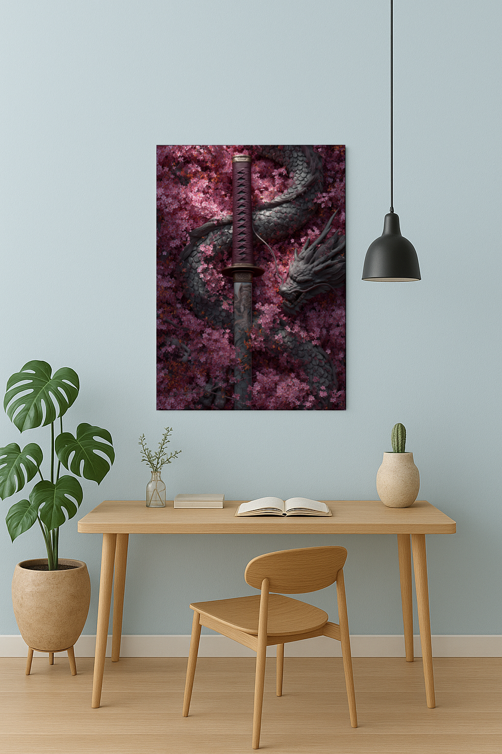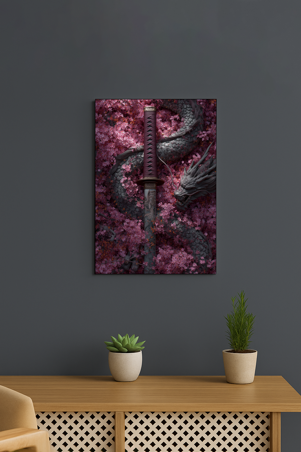 Entfessle die Kraft und Mystik des Posters „Magisches Katana“ mit einem imposanten Katana, umgeben von einem wilden Drachen. Dieses faszinierende Kunstwerk verleiht jedem Raum eine kraftvolle, dynamische Ausstrahlung und ist perfekt für alle, die legendäre Waffen und Fabelwesen lieben. Verwandle dein Zimmer mit diesem Symbol für Stärke und Eleganz.